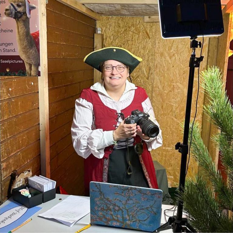 Tierfotografie, Familienfotos und Sportfotografie liebe ich sehr, aber auf Messen biete ich Erinnerungsfotos mit lustigen Hintergründen an. Vielleicht sehen wir uns ja auf der MagdeQueer und du lässt dich von mir fotografieren auf dem Thrones of Books (Ähnlichkeiten mit einer Serie natürlich rein zufällig), lässt Bücher herumwirbeln oder fliegst mit einer Eule über Dächer.
